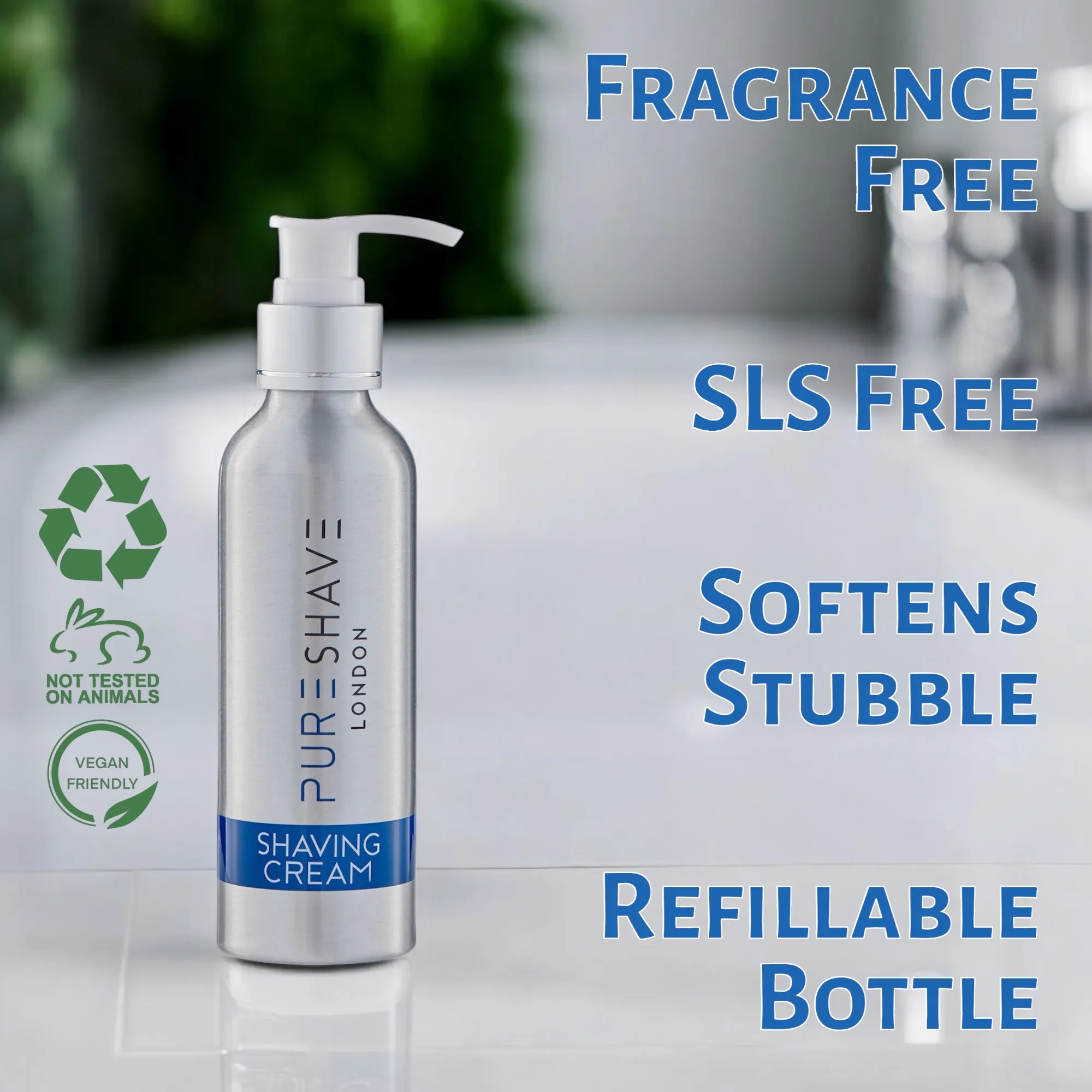 Pure Shave Shaving Cream eliminates razor burn and razor rash to give you a soothing, irritation-free shave.